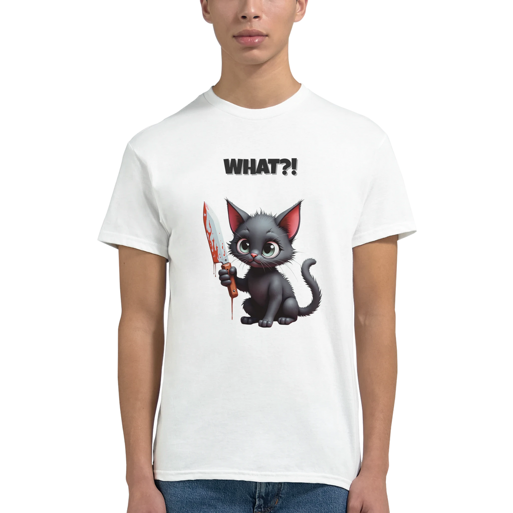 Noen plagg snakker lavt. Dette hvese-mjauer med blodig kniv og uskyldsblikk. Myk og holdbar bomull gjør den digg nok til hverdagsbruk, selv om motivet er alt annet enn hverdagslig. Kombiner med pokerfjes, sarkasme og null unnskyldninger.